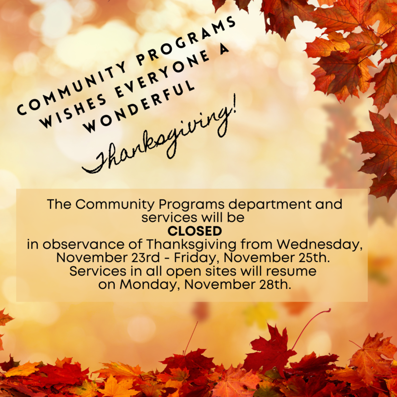 Community Programs - Closure Dates